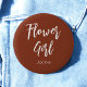 Flower Girl Terracotta Brown Button for Wedding, Bridal Party, Bridal Shower, Bachelorette Party. Check out more products with this design in the collection below.