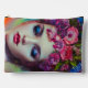 A beautiful ai-generated art nouveau portrait of a woman in a hat made of flowers, surrounded by a rainbow aura. It would be a beautiful addition to a boudoir or a girl's bedroom.