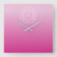 Flower-Like Geometric Monogram | Pink Shaded Ombre Square Wall Clock