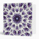 Flower mandala binder with a kaleidoscopic pattern created from a watercolor and ink drawing of an abstract lotus flower in blue, violet and black, and customizable text on the spine.