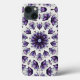Flower mandala iPhone case with a kaleidoscopic pattern created from a watercolor and ink drawing of an abstract lotus flower in blue, violet and black.