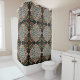 The repeating circular forms with intricate inner detailing make this pattern geometric and organic with flower mandalas and tiled patterns. The subtle color accents bring in warmth without overwhelming the flower mandalas in brown, tan, turquoise, orange, white and black.