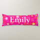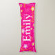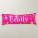 Cute pink, yellow and white patterned 5 letter personalized name body pillow. Customize with your own name currently reads Emily. Background colour can also be changed if required currently pink. A perfect gift for girls. Original art and design by Sarah Trett exclusively for www.mylittleeden.com only on Zazzle.