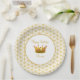 Beautiful elegant golden flower of life and crown Birthday Paper Plate. Text can be personalized.