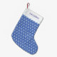 Beautiful white flower of life pattern on light blue background Christmas stocking. Name can be customized. The flower of life belongs to sacred geometry.