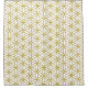 The flower of life symbol in a repeat pattern in gold detail on a white background.