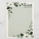 White Flowers with green leaves and stems hold the corners of a sage-green center space on this beautiful and elegant stationery. Perfect for correspondence, invitations, flyers, and more.