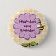 This whimsical button has a purple flower blooming while a bee buzzes by.