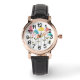 This women's watch has a mid-century modern design of flower made from squares, ovals, and diamonds that have been manipulated to form flowers.