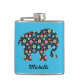 Flower Pattern Elephant on Blue Personalised Hip Flask
