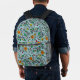 Flower Pattern orange Swirl Berry on Teal - Printed Backpack