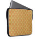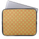 A stylish Neoprene Sleeve to protect your Laptop (up to 15-inch), with a pattern of stylised Green Flowers, outlined in Cream, on a Rusty Red Background; from the Posh & Painterly 'Jungle Drums" collection.