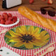 Great accent for an outdoor summer party. Bright colors, vibrant floral design