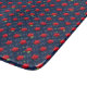 Flower Power is the name of the original pattern by ZoeSPEAK on this 6”x7” Cutting Board. The artwork began with an original photograph of red hibiscus flowers, which float above the repeated words “FLOWER POWER” on a deep grayish blue background. There are lime green dots scattered throughout. Add some flower power to your life!
