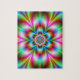 Digital abstract fractal image with a psychedelic flower design in turquoise pink red and blue by Objowl. As well as puzzles this design is also available on most other products. If you need help or would like me to make changes to this or any other item email me. objowl at gmail.com. No obligation just pleased to be of service.