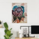 "Flower Princess" Watercolor Pastel Navy Blue Blush Pink Floral Painting Poster.