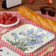 This paper plate is shown in a light ivory colour with a lovely forget me not flower print.