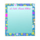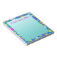 5.5” x 6” notepad with an image of fuchsia, yellow, purple, blue, white, orange and green whimsical flowers on blue and a gradated turquoise writing space. Optional text. See matching notebook. See the entire Flowers & Plants Notepad collection in the OFFICE section.