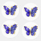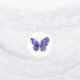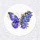 Jewelry, blue, sapphire, sparkling flower butterfly with wing decorated with blue, precious flowers with gold leaves on white background.