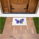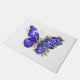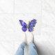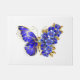 Jewellery, blue, sapphire, sparkling flower butterfly with wing decorated with blue, precious flowers with gold leaves on white background.