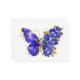 Jewelry, blue, sapphire, sparkling flower butterfly with wing decorated with blue, precious flowers with gold leaves on white background.