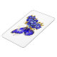 Jewellery, blue, sapphire, sparkling flower butterfly with wing decorated with blue, precious flowers with gold leaves on white background.