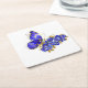 Jewellery, blue, sapphire, sparkling flower butterfly with wing decorated with blue, precious flowers with gold leaves on white background.