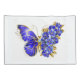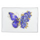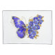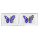 Jewellery, blue, sapphire, sparkling flower butterfly with wing decorated with blue, precious flowers with gold leaves on white background.
