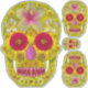 My Day of the Dead-inspired skull celebrates life and death with a collage of my paintings of a wide variety of flowers, and features hibiscus, zinnnia, plumeria, and many more.