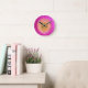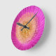 A bright and vibrant pink "hottentot-fig ice-plant" flower center showing pollen and petals. A beautiful and striking clock for any flower lover.