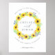 Welcome guests to your wedding with our rustic elegant Flowerfields poster, featuring a wreath of yellow watercolor sunflowers, green foliage, and tiny navy blue wildflower buds. Add your names, wedding date and custom welcome text using the fields provided.