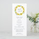 Our country chic wedding program features your ceremony details in elegant lettering, with your names encircled by a wreath of yellow watercolor sunflowers, green leaves and tiny navy blue buds. Reverse side lists the members of your wedding party with easily editable text fields. Coordinates with our Flowerfields wedding invitation collection for summer, spring, outdoor or garden weddings in rustic country settings. Use the template fields to add your ceremony and bridal party information, and then click "Customize" to reposition elements if needed.