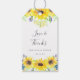 Attach these rustic chic tags to your wedding favours to say thank you to guests in summery style. White tags feature clusters of yellow watercolor sunflowers, green leaves and tiny navy blue buds, framing "love and thanks" and your names and wedding date. All text is editable for ultimate customization. Designed to match our Flowerfields wedding collection.