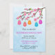 © Socialite Designs. Celebrate Easter with the colourful Easter eggs, cherry blossom and bokeh background invitation. The back of the invitation has three cute bunnies. Perfect invitation for an Easter brunch and egg hunt or Easter dinner.