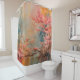 A flowering branch in bright pinkish-orange, against a pink, orange, and grey-blue watercolor background is a beautiful example of wabi-sabi, a Japanese aesthetic that embraces imperfection, impermanence, and the transient nature of existence.