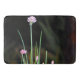 The softly dramatic artwork on this large Bath Mat is an original photograph by ZoeSPEAK of a flowering chives plant. Each pale lavender flower sits atop its light bluish green tubular stem. The dark, evening background of the photo shows off the beauty of this delicious herb.