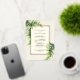 Soft colours, Lush ferns and delicate blossoms cascade over every detail of this enchanting wedding invitation suite, weaving a tapestry of natural beauty and organic elegance. Our easy-to-use template make it a breeze to personalize this design for your wedding, ensuring every detail reflects your unique style and vision effortlessly. Want to personalize further? Use the design tool to easily make your own edits to the template elements.