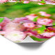 Flowering Plum. Blossoms flowering plum shrubs also known as flowering almond. Pink festive flowers against blue and green background. Spring theme. This is a plum tree, this is an almond tree, this is a cherry tree. This tree is everything. It originates from China and is scientifically called Louiseania triloba, Amygdalus triloba and Prunus triloba. It is considered to be a shrubby cherry, some people call it sakura. Very elegant and decorative plant. Wallart, print, poster, canvas to decorate your room or office