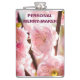 Flowering Plum - Pink Paradize. Closeup view of flowers between the branches of a flowering plum tree in full bloom. The tree or shrub is also known as flowering almond. Pink festive flowers. Spring theme. This is a plum tree, this is an almond tree, this is a cherry tree. This tree is everything. It originates from China and is scientifically called Louiseania triloba, Amygdalus triloba and Prunus triloba. It is considered to be a shrubby cherry, some people call it sakura. Very elegant and decorative plant. Funny customizable hip flask. You can change or delete two lines of text Personal Merry-Maker.