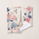 Patterned towel set with a lovely French themed pattern. Pretty flowers and an Eiffel tower and butterflies. Colours include pink, blue, peach and cream.