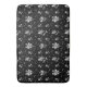 This floral bath mat features a busy silver flower and leaf design on a black background. The flowers have a metallic look. Matching shower curtain available. Contains A.I.