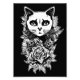 Gothic cat face illustration with flowers. The dark and romantic atmosphere evoked by the gothic style of the image adds to its mysterious and alluring quality.