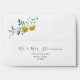 Simple modern greenery and yellow floral wedding return address 5x7 envelope with two roses drawing art.