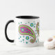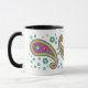 This design features green and pink paisley pattern, accented with blue and yellow flowers and black dots.
