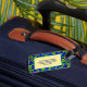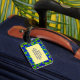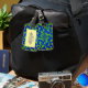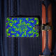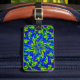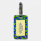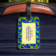 Make your luggage stand out on an airport carousel with unique tag designs! This colourful luggage tag features a wild abstract circular pattern of luminous greens and blues swirling around a central flower with kaleidoscopic movement. The outside edges have shades of purple and magenta. Customize the text on the reverse side with your personal information.