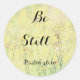 My original digital artwork is featured on this faith sticker, consisting of yellow wildflowers with the words "Be Still..." and bible Scripture reference of those words found in Psalm 46:10. The lettering is in a pretty calligraphic font type. These stickers are a contemporary art design. They can be used for many occasions; to seal your envelopes or sandwich bags or even in scrap books!