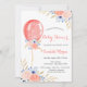 Cute baby shower invitation features pink balloon with flowers baby shower. These baby shower invitations are easily customized for your event by simply adding your details.