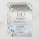 Flowers Blue Butterflies Silver 80th Birthday Invitation