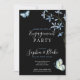 Flowers & Butterflies | Black Engagement Party Invitation - Are you looking for a pretty Spring engagement party invitation? Check out this Black Invitation which has a blue Spring flowers and blue and green butterflies. This is a pretty flowers and butterflies engagement party invitation for a Spring or Summer party.