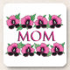 This design features a line of pink roses with green leaves on the top and bottom. The word "Mom" is printed in the middle of the flowers. This coaster comes in a set of 6 and can be customized with a different colored backround. A great gift for your mom on her special day..